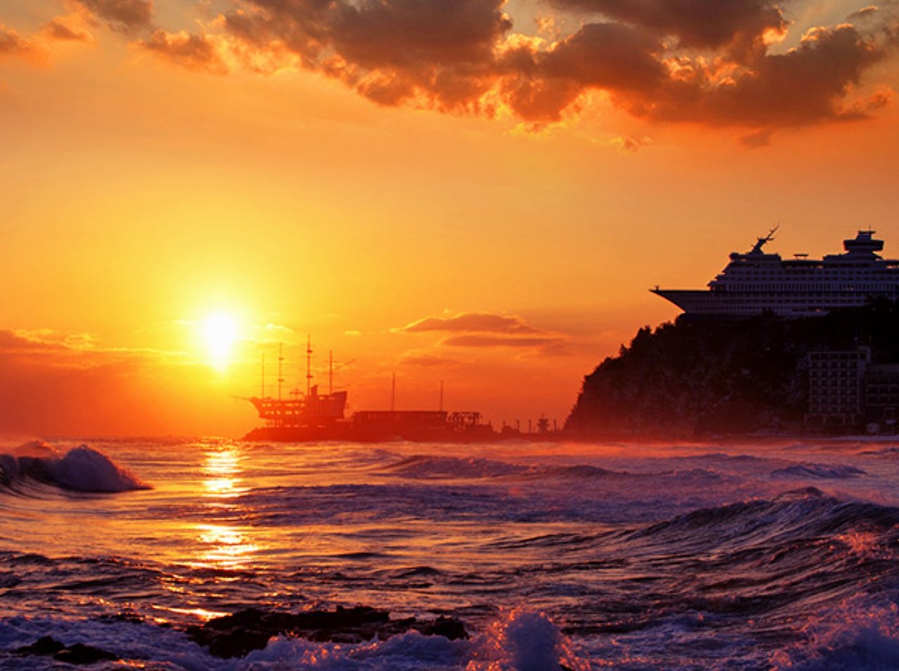 배 사이로 떠오르는 붉은 태양🌅